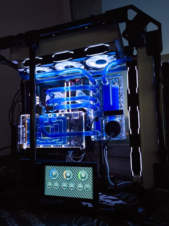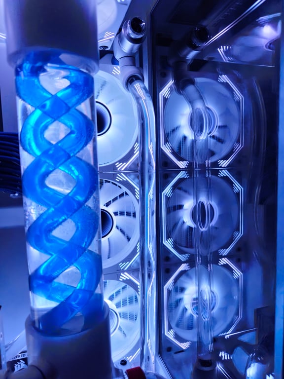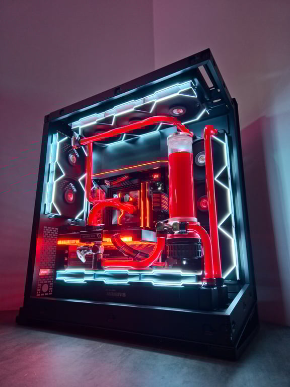 Individuální sestava s vodou chlazenými komponenty a tvrdými trubicemi pro výjimečný vzhled. Whisper-quiet provoz a teplotní stabilita - prodloužení životnosti komponent. Velké možnosti výběru barev, na míru vytvářené kabely, každá sestava je unikátní. 3d tištěné doplňky.